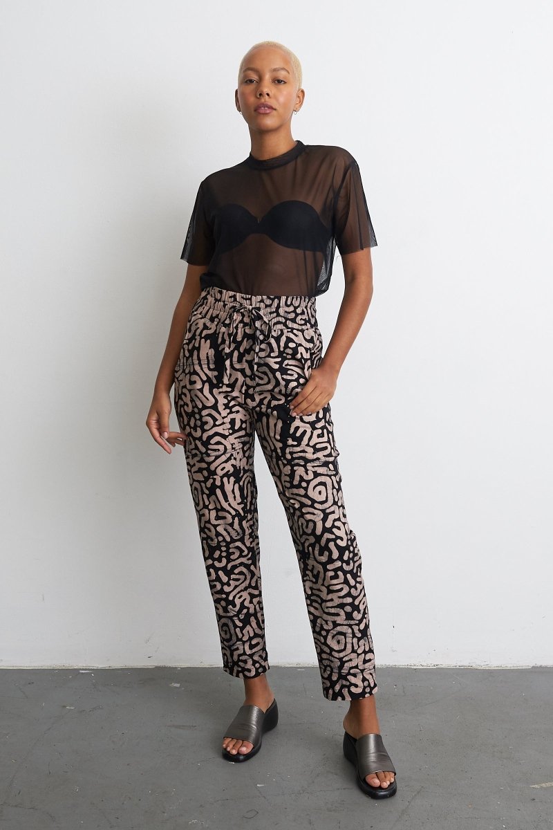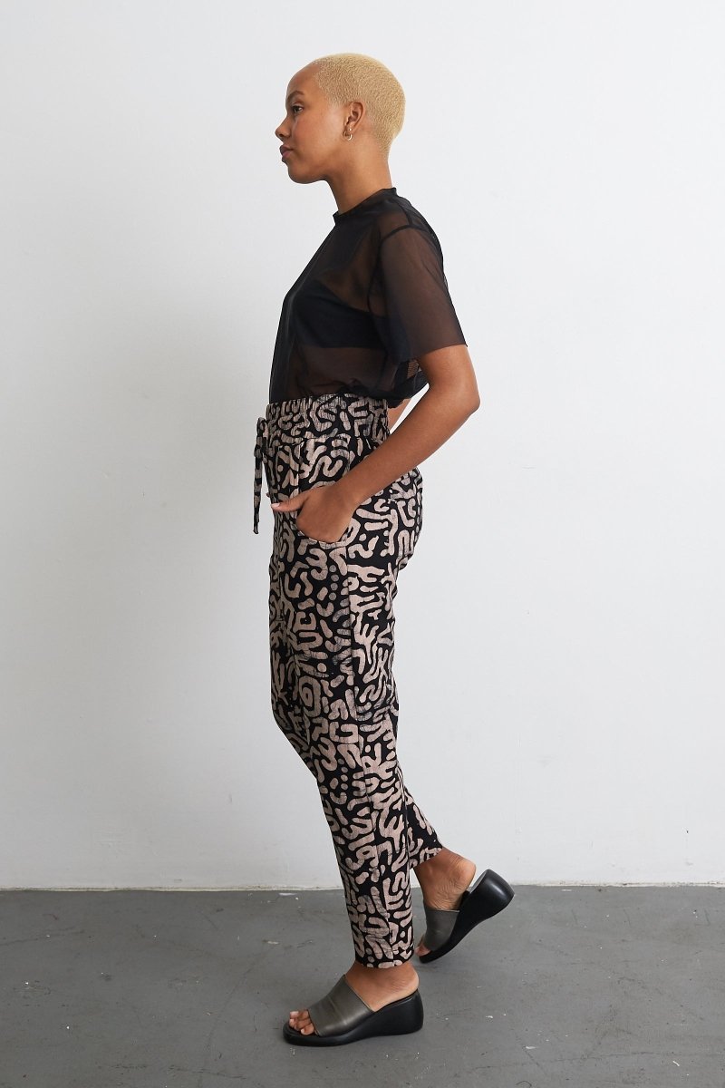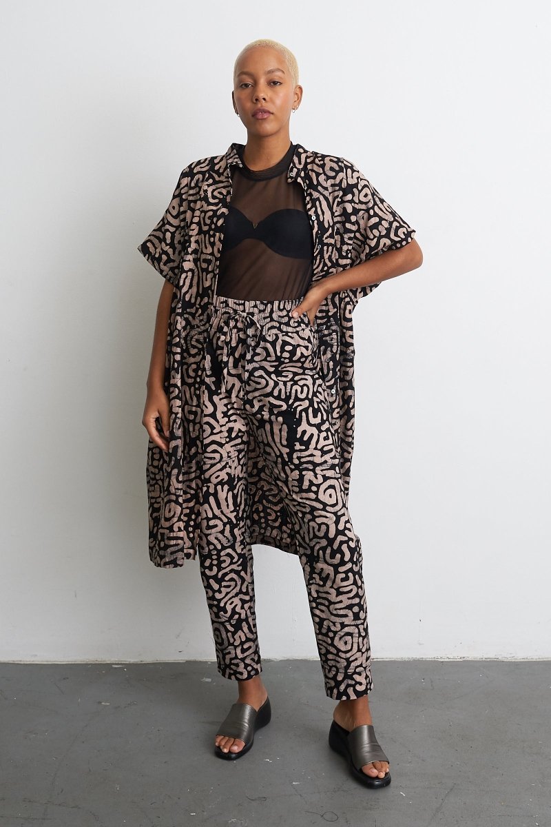 Relaxed cotton trousers with a wide elastic and drawstring waistband and semi-high waist. The Kpong has trouser pockets and a slightly tapered leg. We made these years ago and they did well - fit still seems great on everyone!