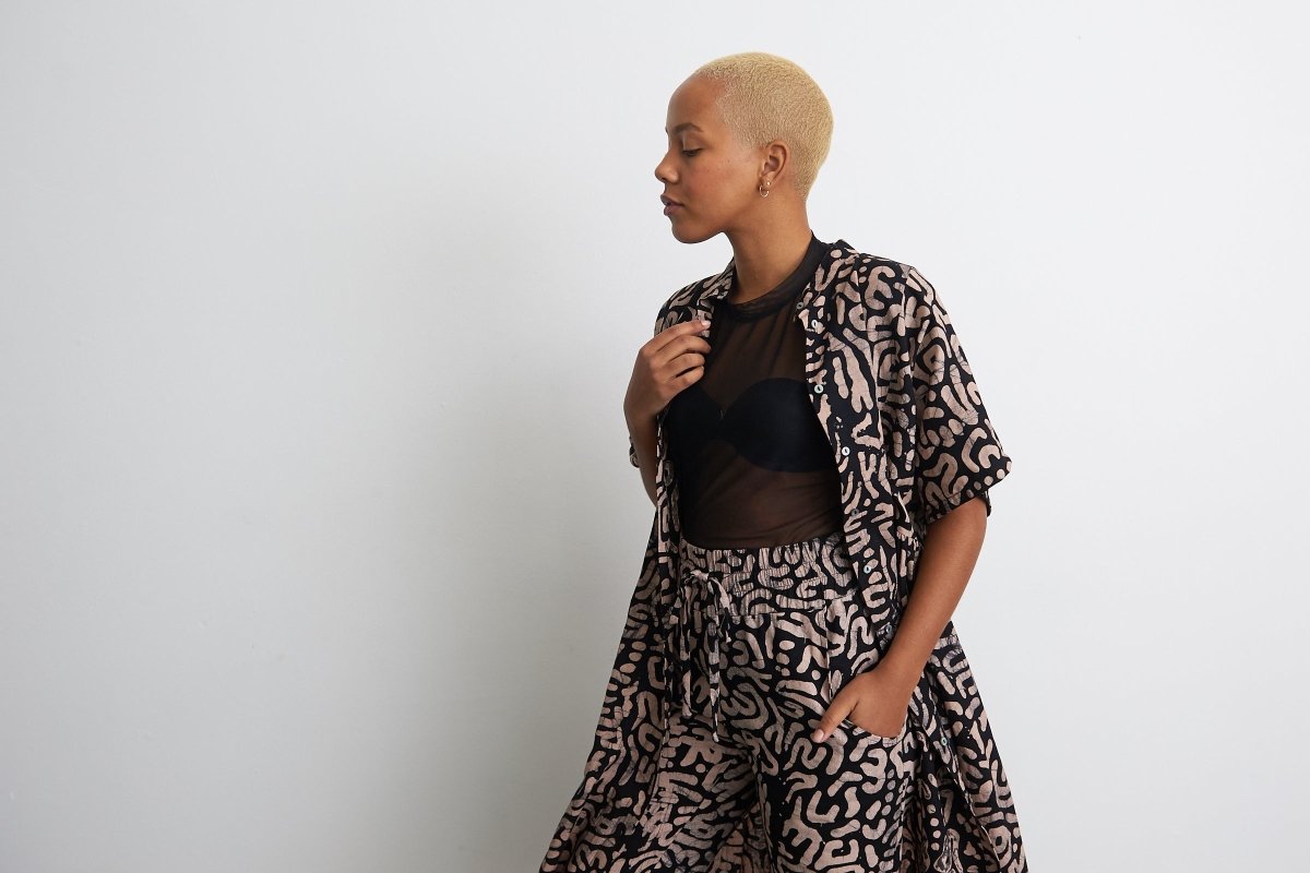 Osei-Duro garments are hand dyed and each piece is unique. Please note that print placement and hue may vary.